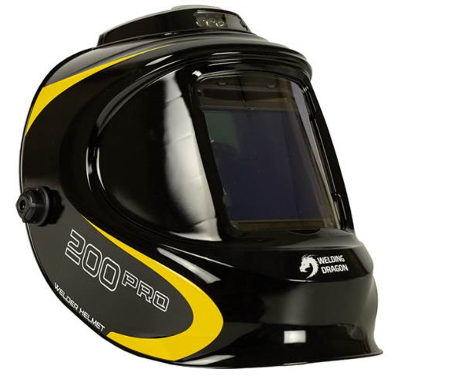 Маска Welding Dragon WH-200PRO – це маска із світлофільтром автоматичного затемнення, так звана маска-хамелеон. Відмітною особливістю саме цієї маски є наявність на верхівці шолома блоку для охолодження та підсвітки. Така конструкція дозволяє полегшити роботу в умовах поганого освітлення та під час тривалої роботи. Блок охолодження та підсвітки має вбудований акумулятор на 600 mAh, зарядити який можна через роз’єм USB type C (5V/1A). Оскільки це маска із світлофільтром автоматичного затемнення, то, як і решта таких масок, вона є чутливою до дії низьких температур. Загалом маска Welding Dragon WH-200PRO чудове рішення для зварників, які працюють з різними видами зварюваннями, оскільки маска змінить ступінь свого затемнення автоматично, відповідно до налаштувань, не потрібно кожен раз робити налаштування вручну. За швидкість реакції маски відповідають чотири сенсори, розташовані обабіч від нижнього то верхнього блоків сонячних батарей. Керування маскою винесене на бічну поверхню шолому під ліву руку. Можна відрегулювати:чутливістьступінь затемненнязатримку відкриттяРегулювання плавне, безступінчасте. Також поруч з ручками регулювання основних налаштувань винесено перемикач «зварювання/різання/шліфування». Сам шолом виготовлений з легкого пластику і на голові тримається за рахунок зручного оголів’я, яке можна підлаштувати під параметри конкретної людини. Світофільтр маски має подвійне живлення: сонячна батарея, яка працює від світла дуги, та резервна змінна літієва батарея (CR2450). Така конструкція забезпечує неперервну роботу світлофільтра і надійний захист очей зварника. Світлофільтр працює за технологією True Color, яка забезпечує більш реалістичне відтворення кольорів та більший комфорт для очей зварника.