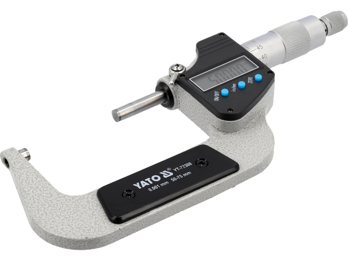 Опис Мікрометр YATO з LCD цифровою шкалою, точністю 0.001 мм в діапазоні 50 - 75 мм [20] код товару YT-72308