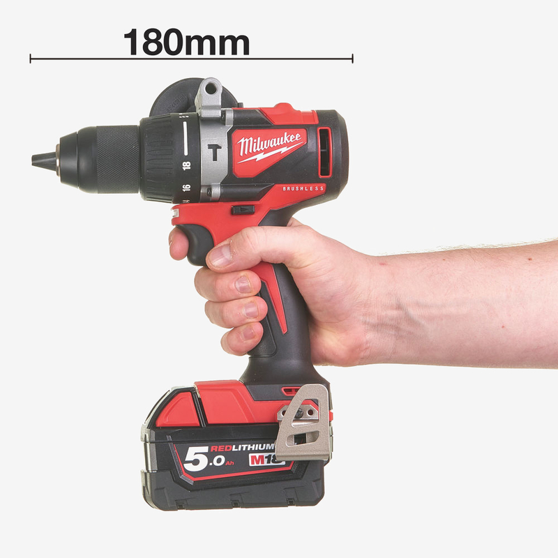 Новый бесщеточный двигатель обеспечивает на 40% больше крутящий момент, чем у предыдущей модели - до 82 Нм. Полностью металлический патрон 13мм с функцией надежной фиксации оснастки. Боковая рукоять для удобства работы. Компактная дрель-шуруповерт длиной 180 мм. Контроль состояния отдельных элементов аккумулятора оптимизирует время работы инструмента и обеспечивает долговечность аккумулятора. Светодиодная подсветка рабочей зоны. Полностью металлическая двусторонняя клипса позволяет легко и быстро повесить инструмент на ремень. Гибкая аккумуляторная система: работает со всеми аккумуляторами Milwaukee М18 . Комплектация Дрель-шуруповерт M18 BLPD2-0 - 1 шт. Боковая рукоять - 1 шт. Аккумулятор M18 B5 5.0 Ач - 2 шт. Зарядное устройство для M12-18С - 1 шт. HD кейс.