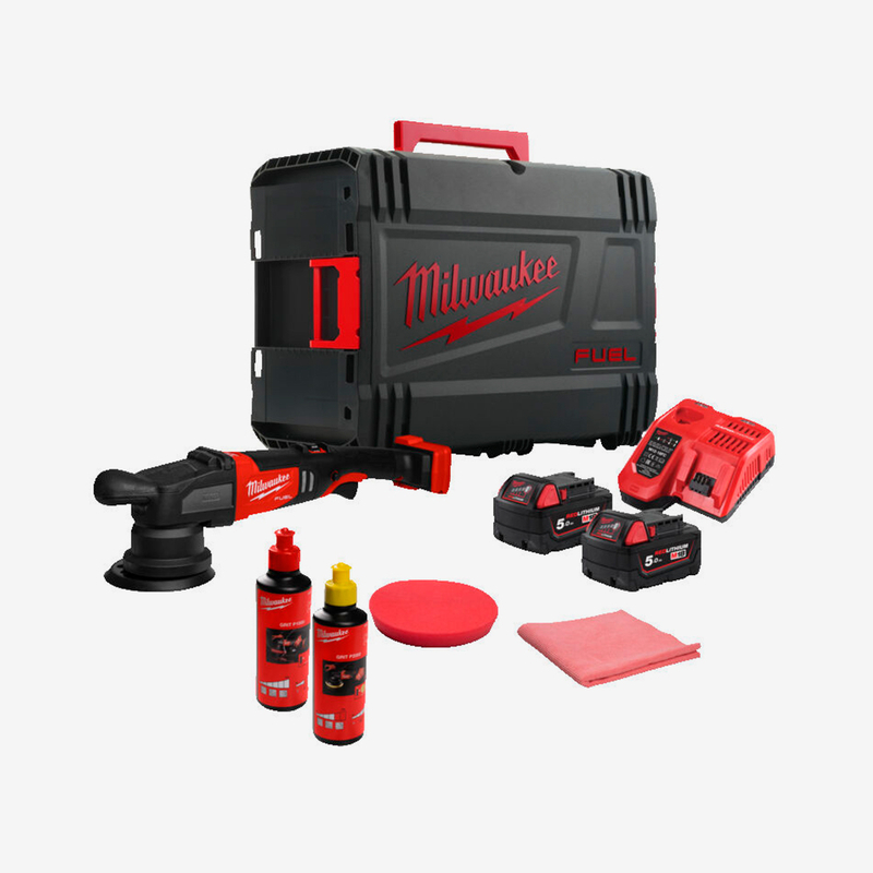 Обеспечивает производительность равную сетевым орбитальным шлифмашинам для выполнения работ по полированию и тяжёлых коррекционных работ. Восьмипозиционный переключатель скорости для максимального контроля и качества отделки Орбитальная функция 15 мм для быстрого и эффективного полирования. Большая эргономичная проризиненная передняя рукоятка для лёгкого и удобного хвата, особеннопри работе вертикально. Функция блокировки во включённом режиме обеспечивает более комфортное и менее утомительное использование при продолжительной работе. Вращающийся на 90 аккумуляторный отсек с зазором более 50 мм для предотвращения соприкосновения с окрашенным материалом и для хранения инструмента как в горизонтальном,так и в вертикальном положении. Функция блокировки линии для предотвращения случайного запуска. Съёмный противопылевой экран для предотвращения попадания мусора и увеличения срока службы. Наша система FUEL в корне меняет баланс сил в аккумуляторных технологиях. Бесщёточный двигатель MILWAUKEE POWERSTATE , аккумуляторы REDLITHIUM и интеллектуальная электроника REDLINK PLUS обеспечивают превосходные мощность, время работы и срок службы. Универсальная аккумуляторная система: работает со всеми аккумуляторами MILWAUKEE M18 . Комплектация Машина полірувальна ексцентрикова акумуляторна M18 FROP15-0 - 1 шт. Аккумулятор M18 B5 5.0 Ач - 2 шт. Зарядное устройство для M12-18 FC - 1 шт. Подошва Ø125мм - 1 шт. Пылезащитный экран - 1шт. Губка полировочная жесткая Ø140мм - 1шт. Губка полировочная полужесткая Ø140мм - 1шт. Салфетка полировочная - 1шт. Полироль (красная) - 1шт. Полироль (желтая) - 1шт. HD кейс.