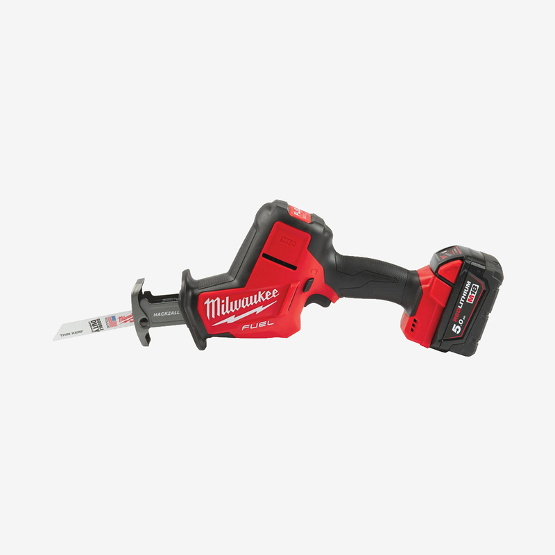 Компактная сабельная пила HACKZALL для работы в ограниченных пространствах. Упор на шарнире позволяет пользователю выбрать оптимальную позицию для резки. Система FIXTEC для быстрой и безключевой замены полотна. Контроль состояния отдельных элементов аккумулятора оптимизирует время работы инструмента и обеспечивает долговечность аккумулятора. Индикатор заряда аккумулятора и светодиодная подсветка на корпусе инструмента. Универсальная аккумуляторная система: работает со всеми аккумуляторами MILWAUKEE M18 . Комплектация Пила сабельная M18 FUEL FHZ-0 - 1 шт. Аккумулятор M18 B5 5.0 Ач - 2 шт. Зарядное устройство для M12-18 FC - 1 шт. HD кейс.