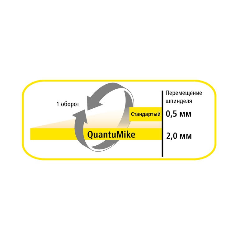 В 4 раза быстрее, чем стандартный микрометр с шагом микровинта 0,5 мм.