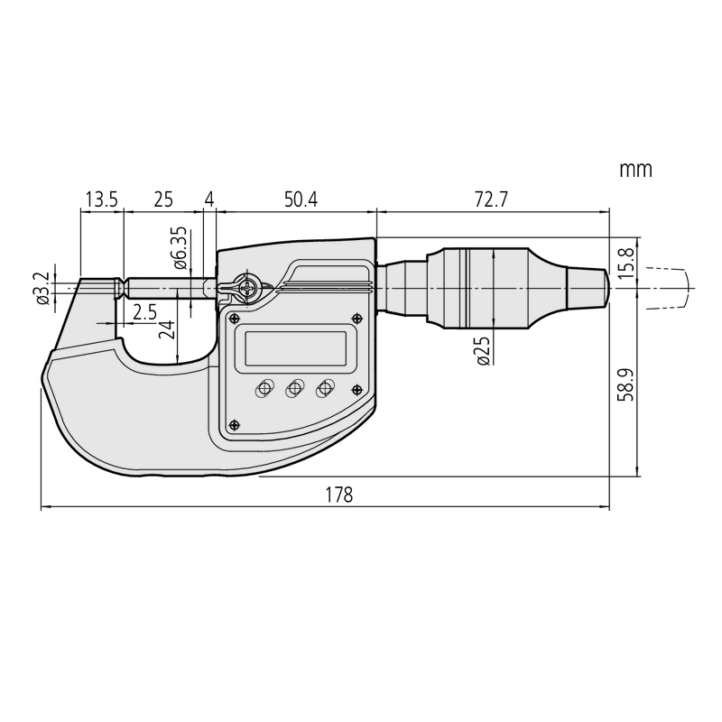 Характеристики MITUTOYO Високоточный цифровой микрометр 0-25 мм код товару Mi293_1
