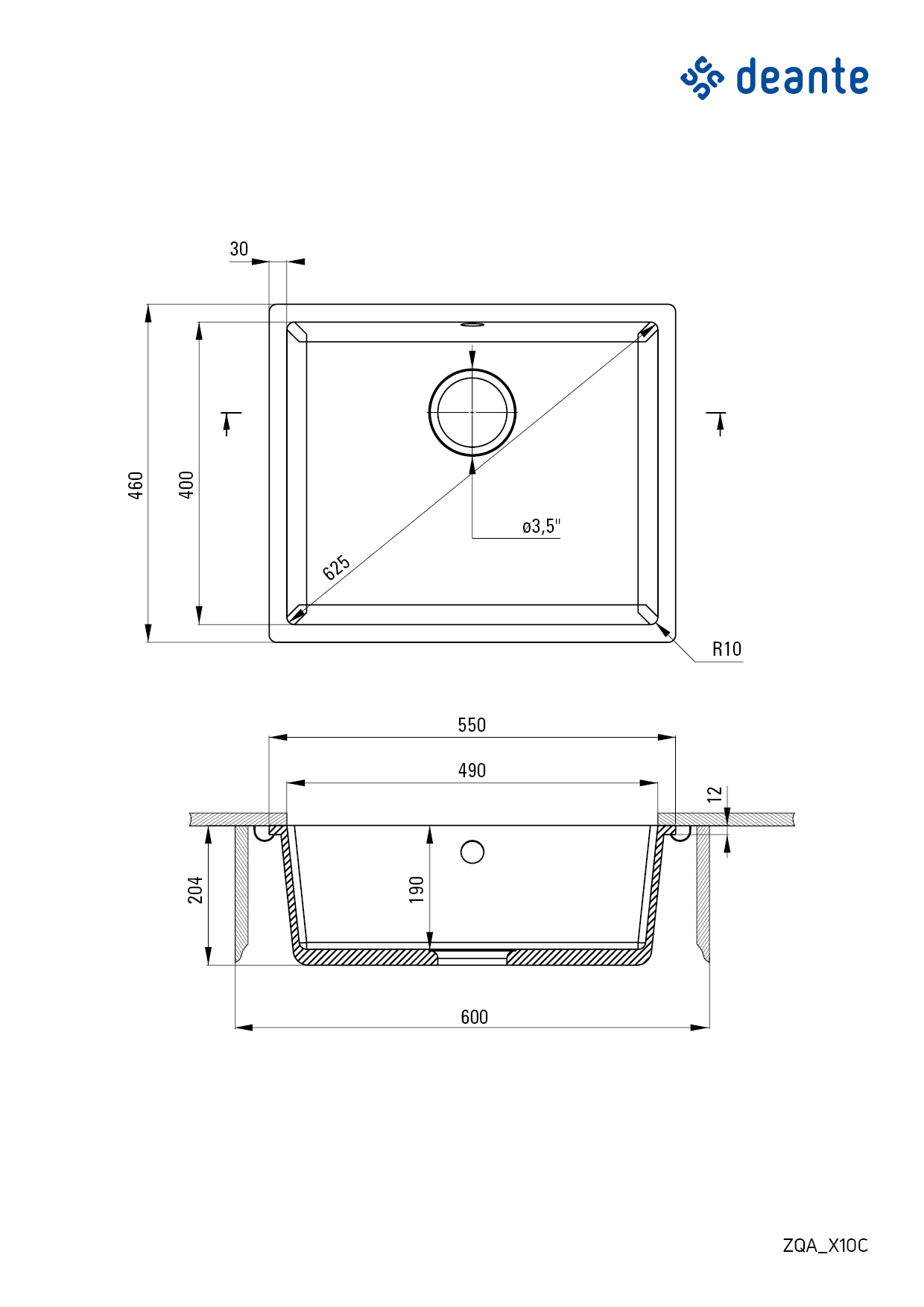 Характеристики Мийка кухонна Deante Corda, граніт, квадрат, без крила, 550х460х204мм, чаша - 1, вбудована, антрацит код товару ZQA_T10C