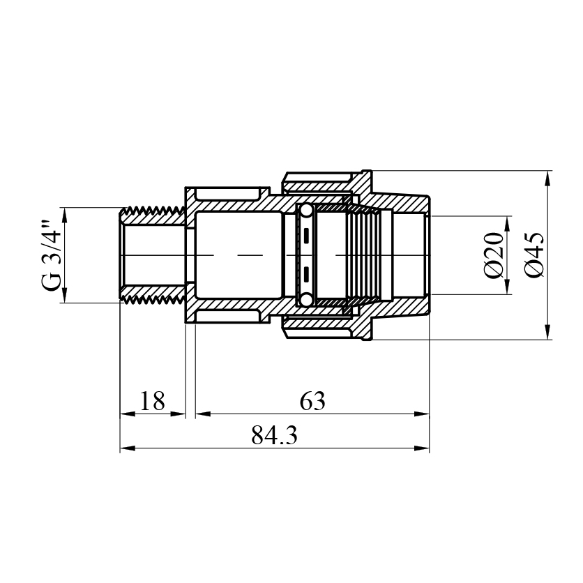 Характеристики Муфта ПЕ STR 20х3/4 РН код товару CV028563