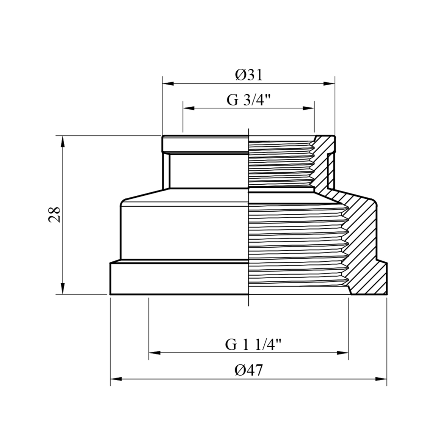 Характеристики Муфта перехідна STA 1 1/4х3/4 ВВ латунна код товару CV026225