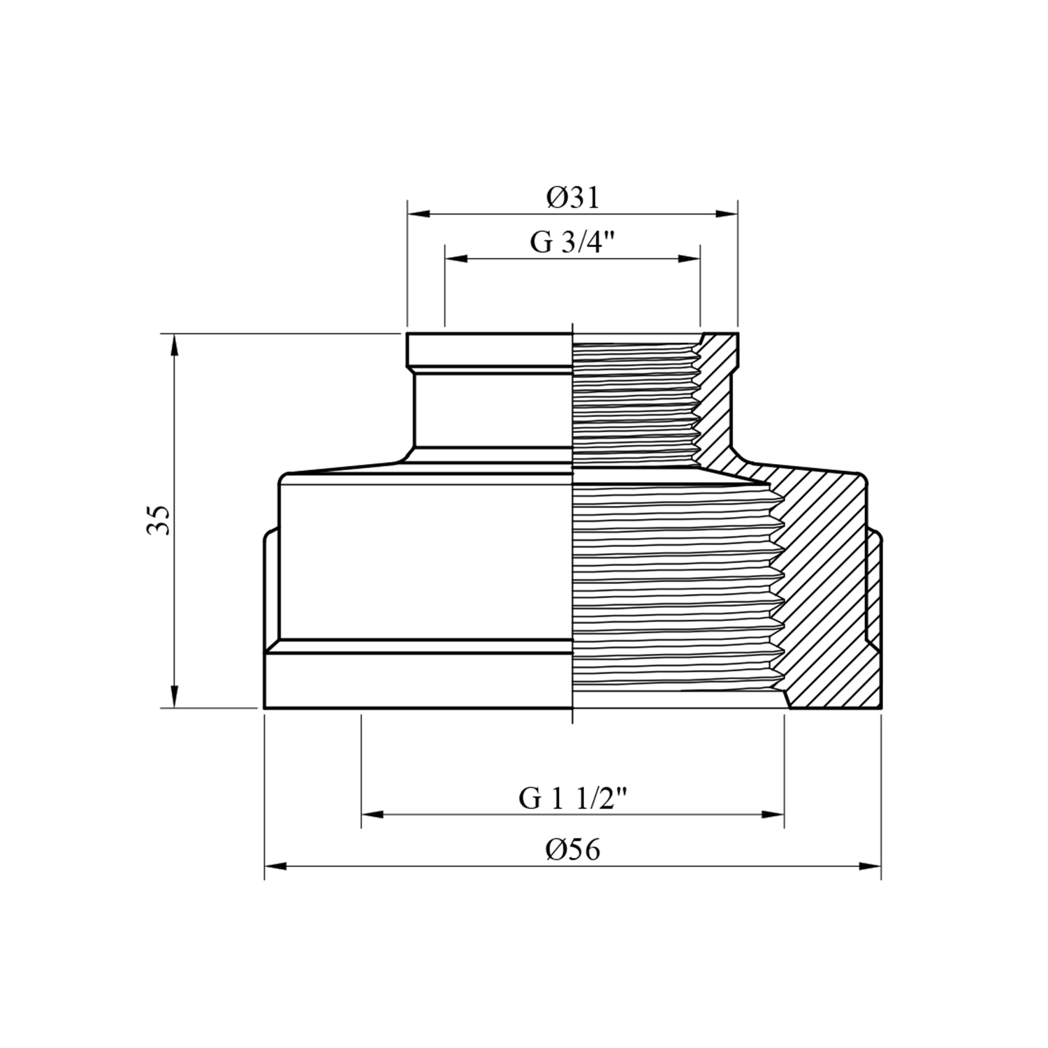 - Розміри: 1 1/2 х 3/4 ВВ