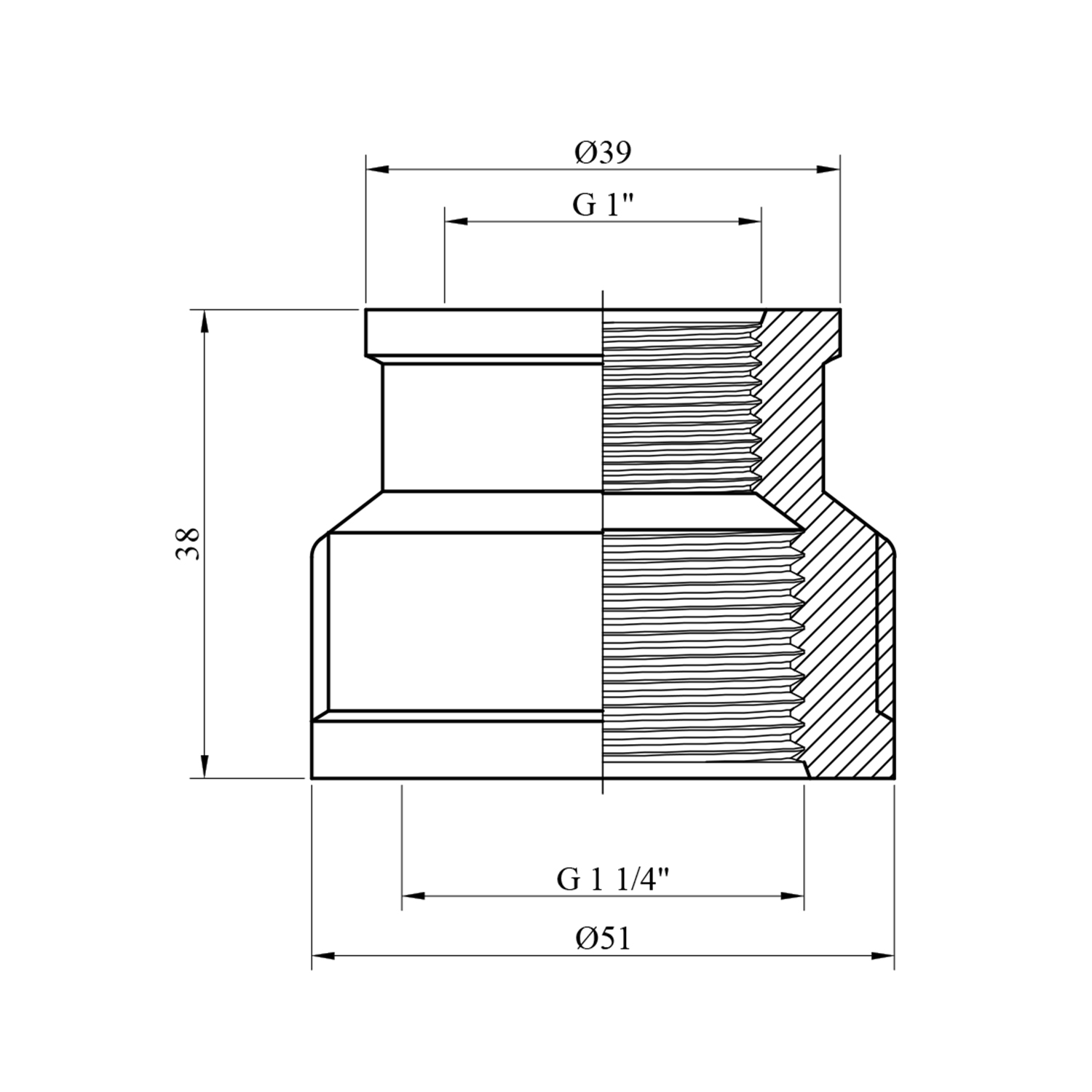 - Розмір: 1 1/4 х 1 ВВ