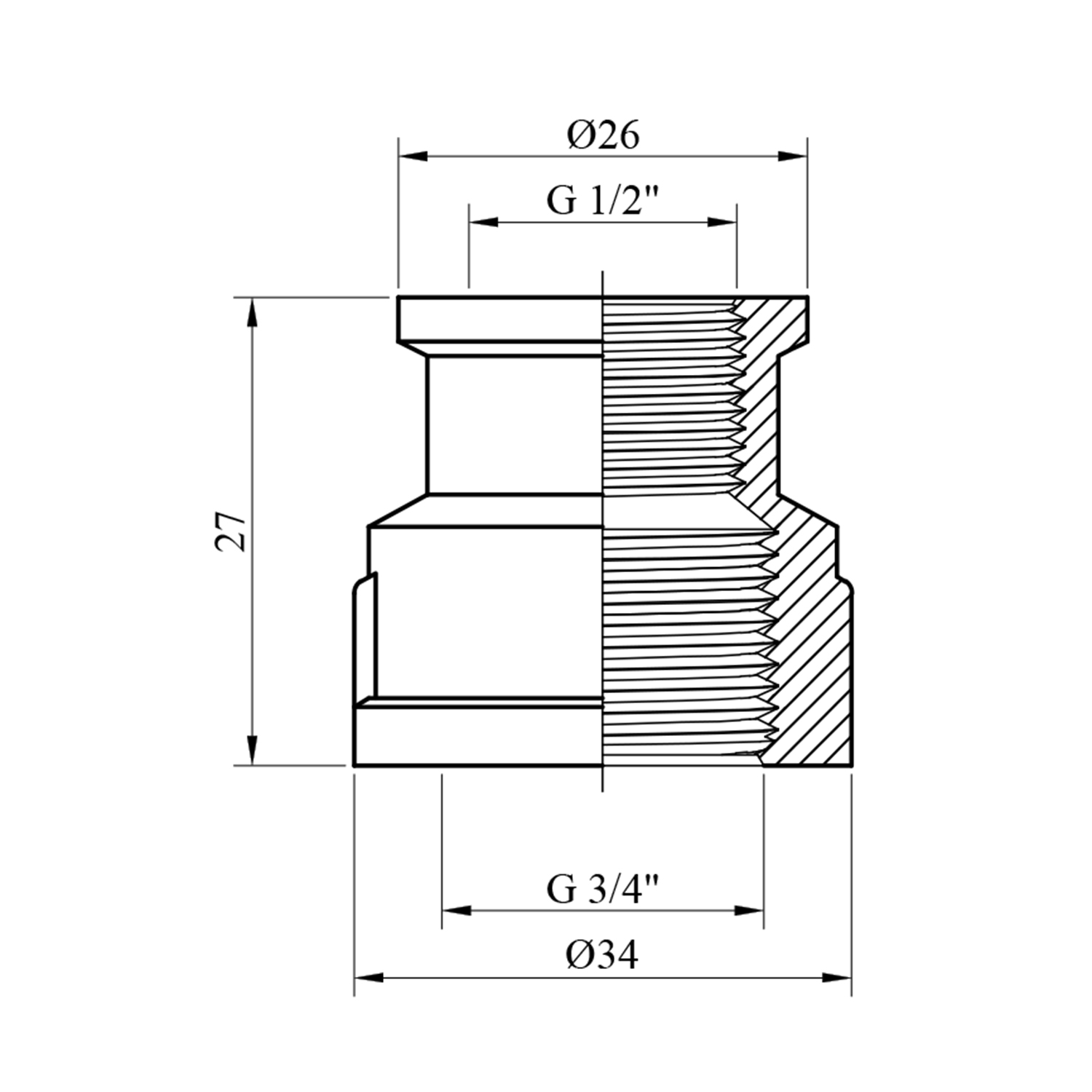 - Розміри: 3/4 х 1/2