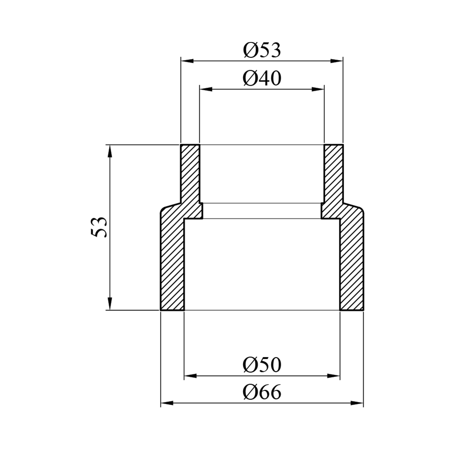 - Діаметр: 50 мм (вхід) / 40 мм (вихід)