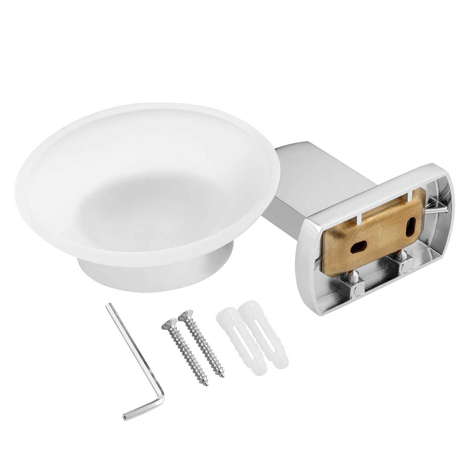 Мыльница Kroner KRP Graz - C95604 – это стильное сочетание классики и современного дизайна. Настенная конструкция с круглой стеклянной чашей смотрится элегантно и обеспечивает удобство в повседневном использовании. Корпус из цинкового сплава с глянцевым хромовым покрытием добавляет зеркальный блеск и легко очищается от водяных пятен.
