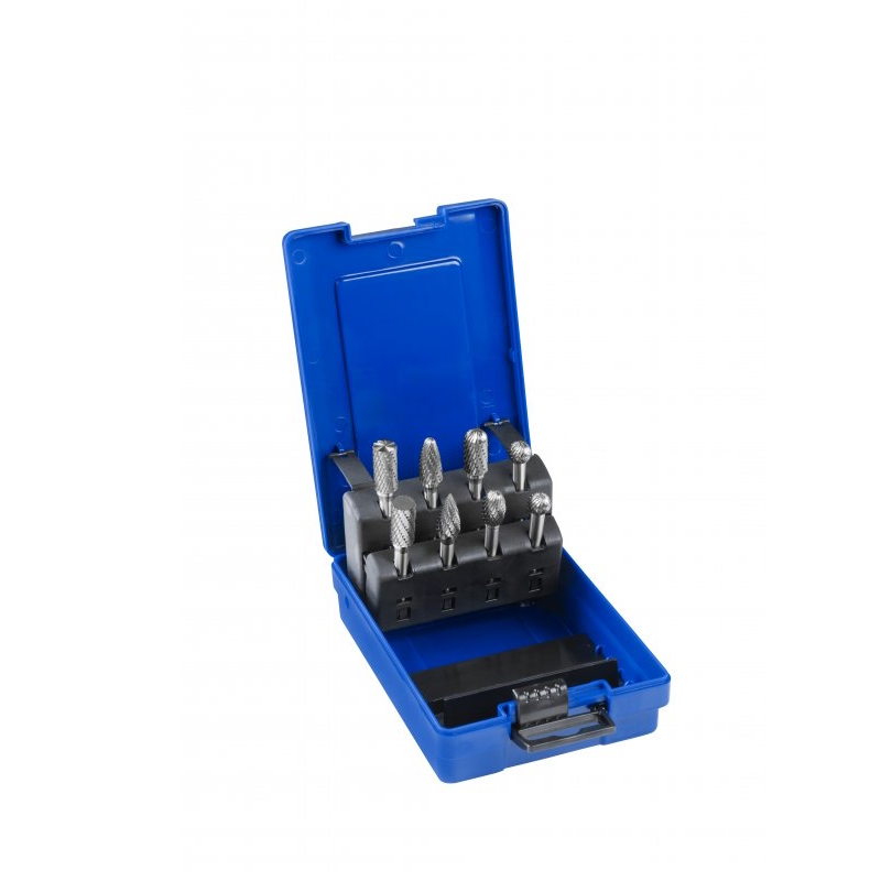 - Набір включає (тип борфрези та розмір робочої частини):1. B 10×20 мм2. F 10x20 мм3. E 10×16 мм4. D 10×9 мм5. A 10×20 мм6. C 10×20 мм7. D 10×9 мм8. G 10×20 мм