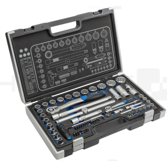 Набір торцевих головок, викруткових біт, аксесуарів 1/4” та 1/2”. Всі торцеві головки були ковані за стандартом і мають 12 клинів. Це спеціальна форма дозволяє підібрати головки до шестигранних, дванадцятигранних болтів та гайок, torx, spline, квадратних та дюймових розмірів.