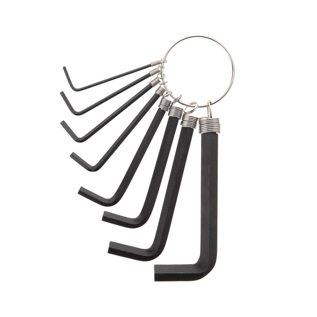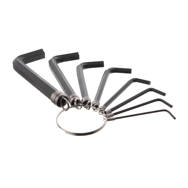 8 метричних шестигранних ключів розташовані на персональних тримачах у вигляді брелока, набір зручно зберігати, ключі не губляться, також можна покласти їх у ящик до інших інструментів чи підвісити над робочим столом.
