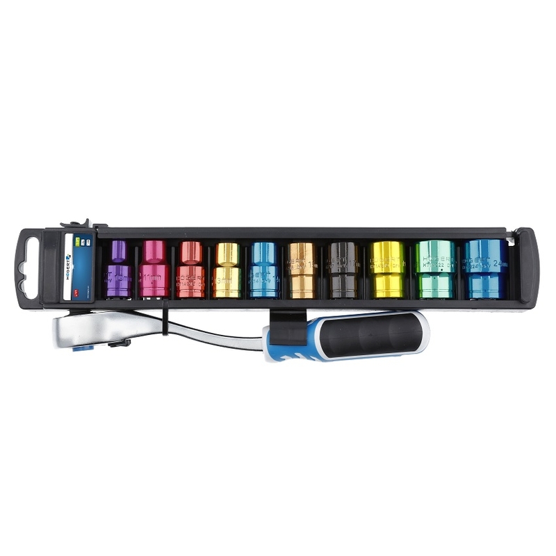 Характеристики Набір кольорових торцевих голівок 1/2". з тріскачкою 72 зубці 10 - 24 (HT1R382) код товару 5901867145956
