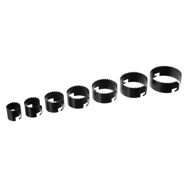 Характеристики Набір корончастих свердел по гіпсокартону составний, 7 од., висота 20 мм, 26-63 мм код товару BT-0021