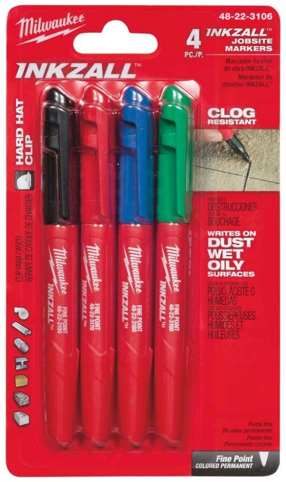 Характеристики Набір маркерів INKZALL (Синій/Червоний/Зелений/Чорний) MILWAUKEE код товару 48223106