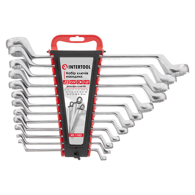 Характеристики Набір накидних ключів 12 шт., 6-32 мм, Cr-V INTERTOOL HT-1103 код товару HT-1103