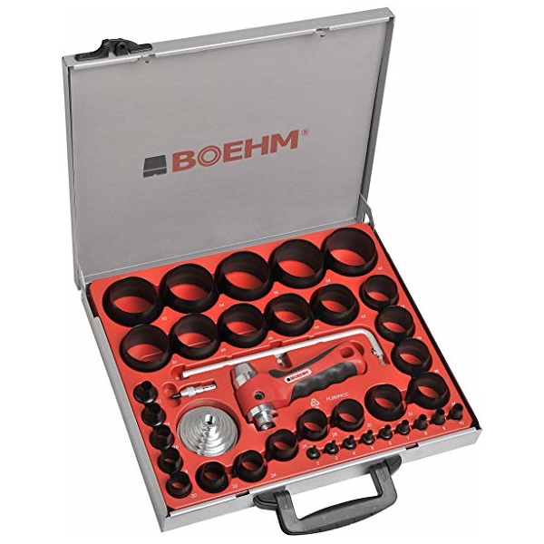 Перший – знімний лоток зі складом нашого набору JLB260PACC.Другий пропонує обробну дошку PLAR4, 25 порожнистих пуансонів від 62 до 100 мм та патрон JLBM100. У цьому випадку різання проводиться ударами киянки по матеріалу про ріжучу кромку просічки. Будьте обережні, не використовуйте молоток у такій конфігурації, це може зіпсувати просічку. Ви також можете використати наш ручний прес. (Дізнайтеся, як використовувати ці інструменти)