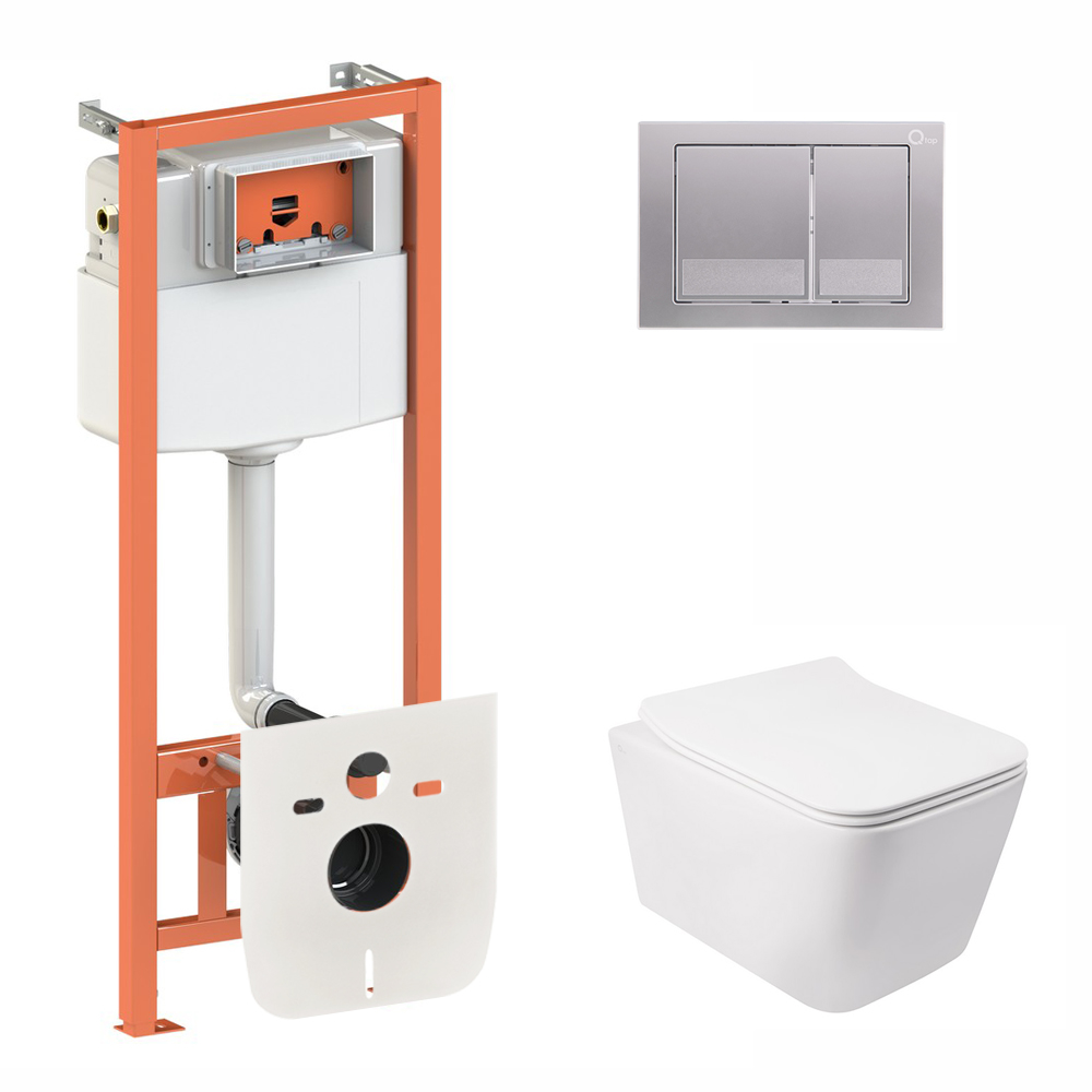 Опис Набір Qtap інсталяція 3 в 1 Nest QT0133M425 з панеллю змиву квадратною QT0111M06029SAT + унітаз з сидінням Crow QT05335170W код товару SD00042982