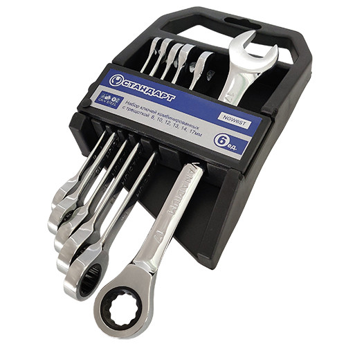 Опис Набор комбинированных ключей трещоточных 8-17мм 6ед. СТАНДАРТ NGW6ST код товару NGW6ST