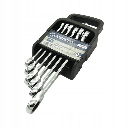 Набір трещоткових комбінованих ключів СТАНДАРТ включає 6 ключів (8-17 мм). Виготовлені з високоякісної сталі, забезпечують зручність та ефективність роботи. Ідеальні для ремонту та обслуговування.