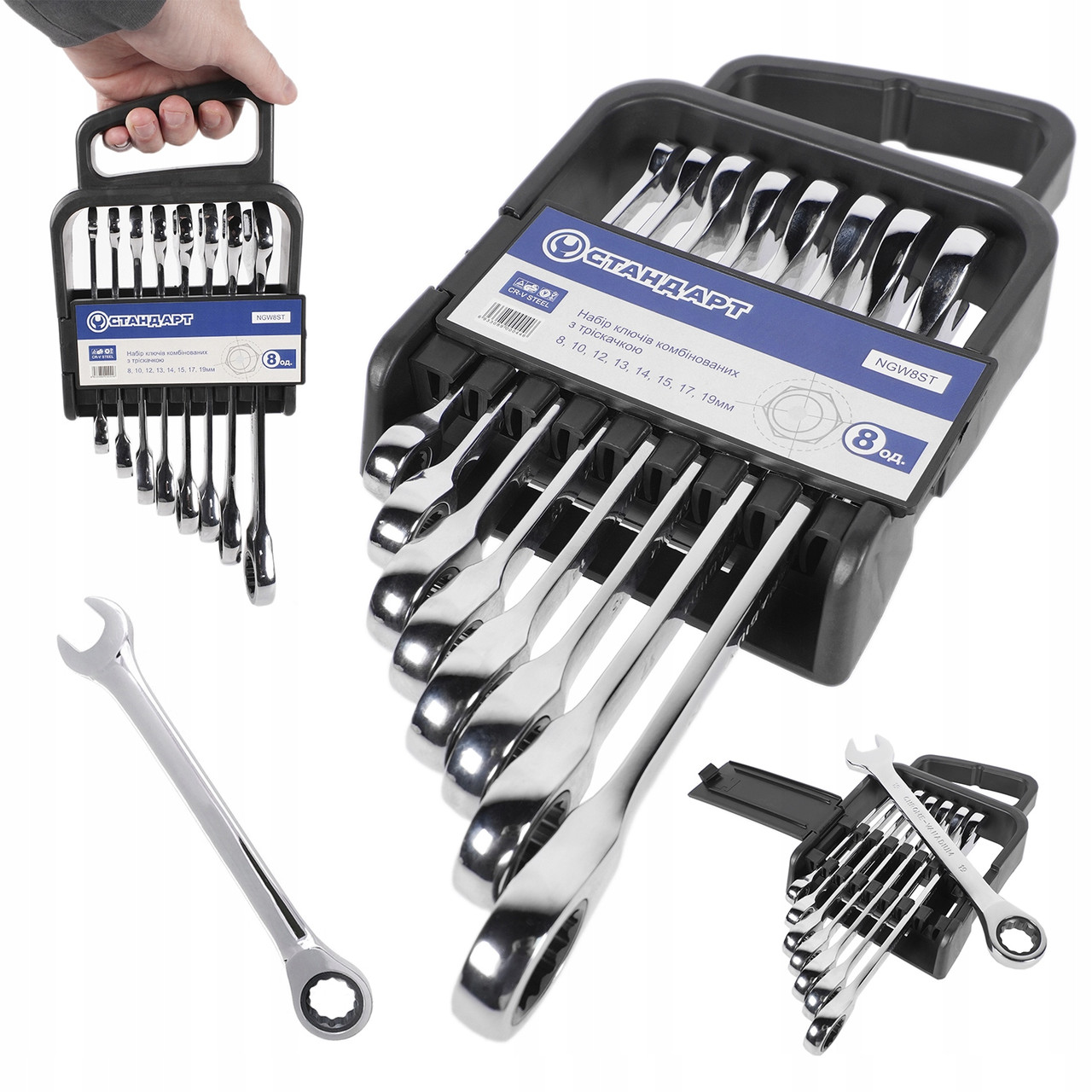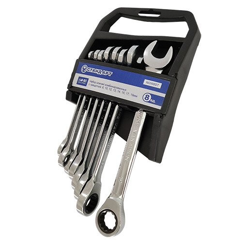 Опис Набор ключей трещоточных комбинированных 8-19мм 8ед. СТАНДАРТ NGW8ST код товару NGW8ST