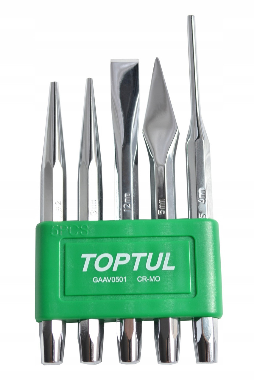 Відчуйте силу інструментів у своїх руках! Набір виколоток і зубил TOPTUL GAAV0501 - це те, що потрібно для справжніх майстрів.