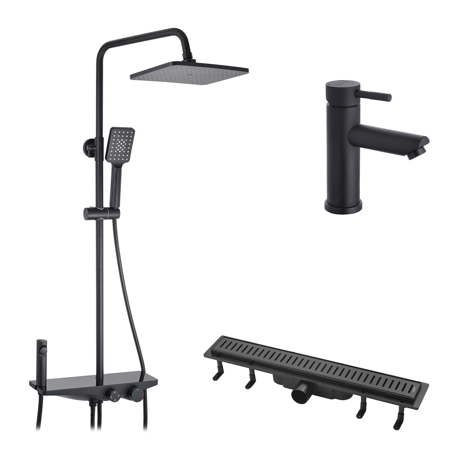 Опис Набор 3 в 1 душевая система Kroner Armada-SCH066 + смеситель Edelstahl Klassisch-SCH010 + трап линейный Harz SCH60 Sektion Schwarz код товару CVS30169
