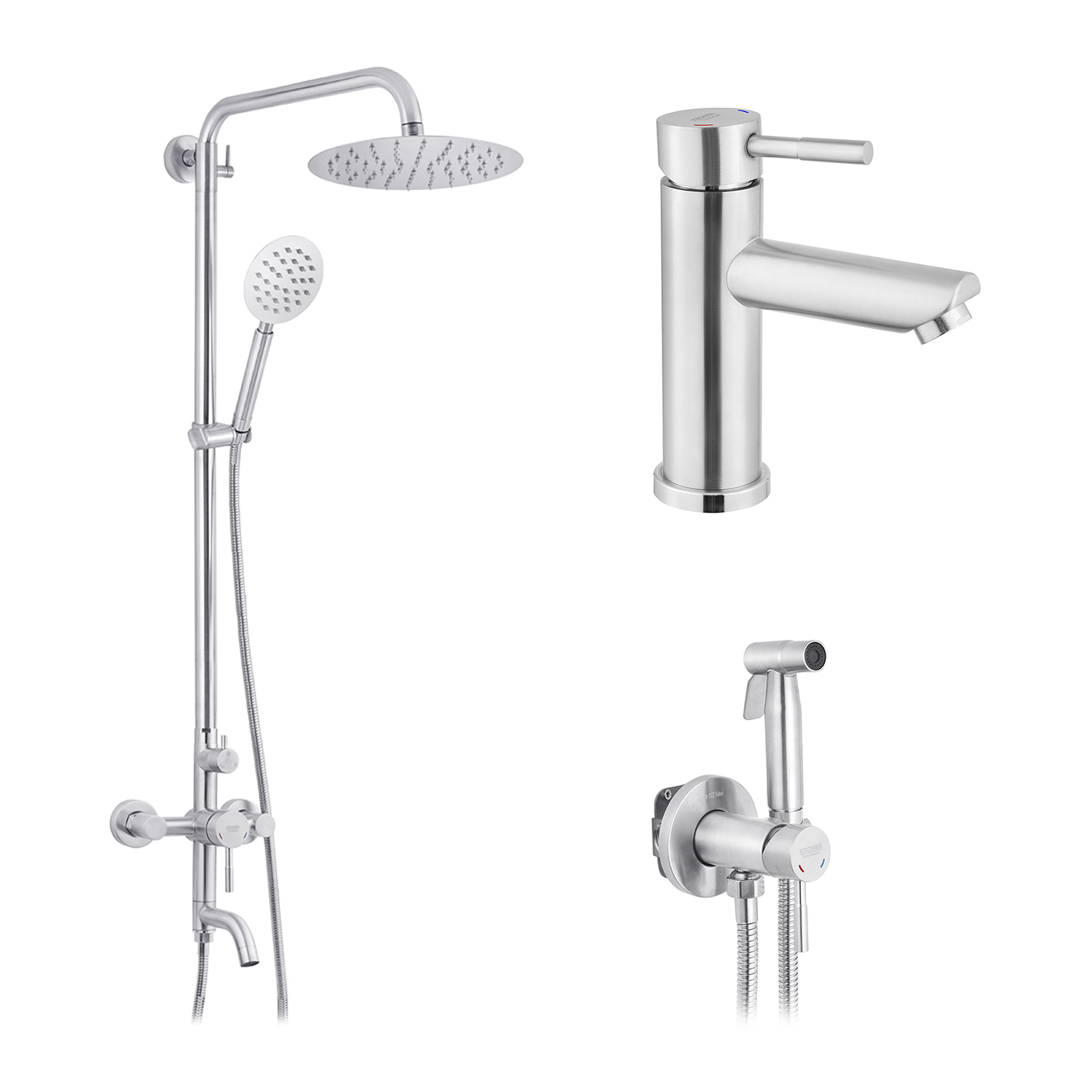 Опис Набор 3 в 1 душевая система Kroner Edelstahl Klassisch-ESG063 + смеситель Edelstahl Klassisch-ESG010 + смеситель Edelstahl Klassisch -ESG053 код товару CVS30192