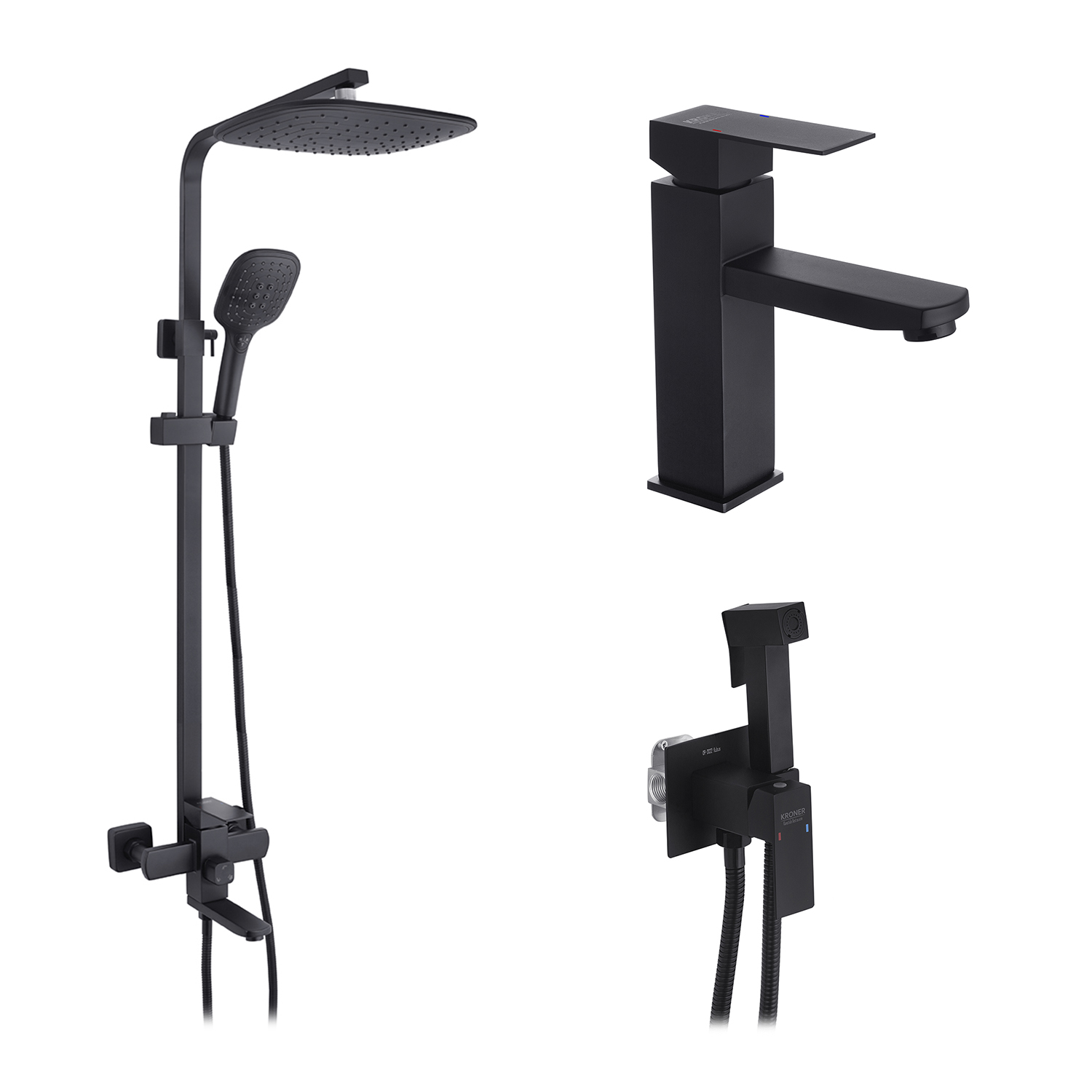 Опис Набор 3 в 1 душевая система Kroner Edelstahl Kubus-SCH063 + смеситель Edelstahl Kubus-SCH010 + смеситель Edelstahl Kubus-SCH053 код товару CVS30176