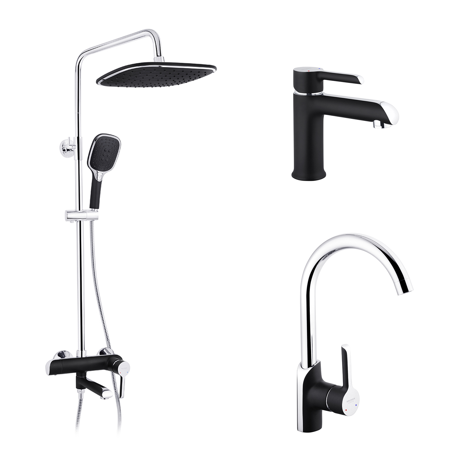 Опис Набор 3 в 1 душевая система Kroner Essen-SCH063 + смеситель Essen-SCH030 + смеситель Essen-SCH010 код товару CVS30219