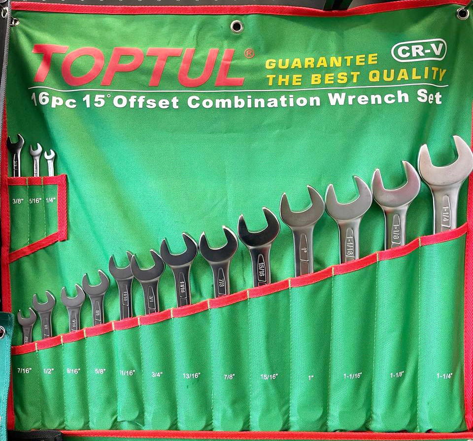 Відкрийте нові можливості з набором ключів TOPTUL! 16 ключів, які стануть вашим надійним помічником у будь-якій справі.