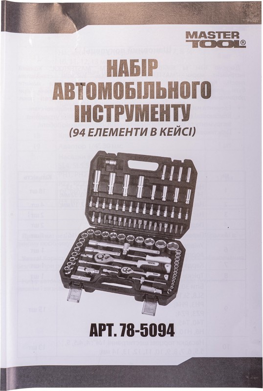 Характеристики Набор ключей и насадок торцевых MASTERTOOL CrV 1/4" и 1/2" 94 шт 78-5094 код товару 78-5094