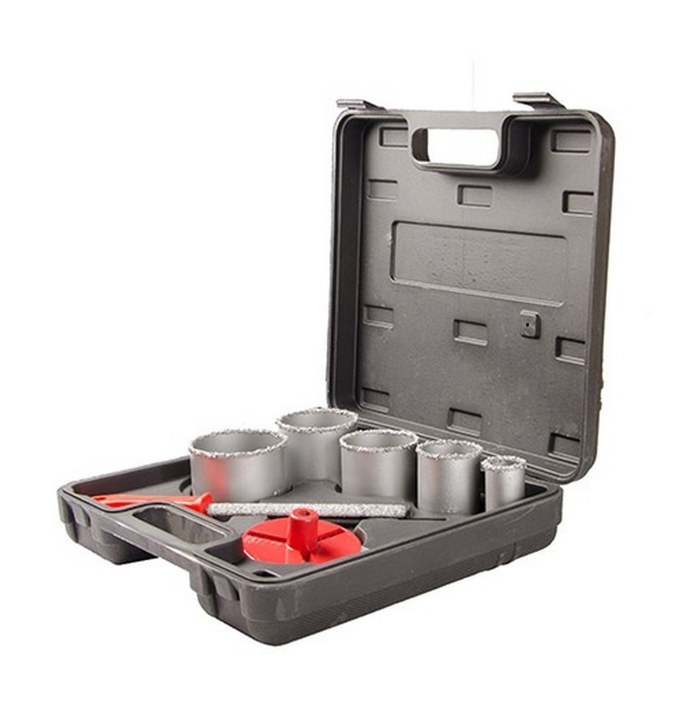 Характеристики Набір корончатих свердл GRANITE для плитки 5 шт 33-83 мм вольфрамове напилення + напильник в чемодані 2-08-005 код товару 2-08-005