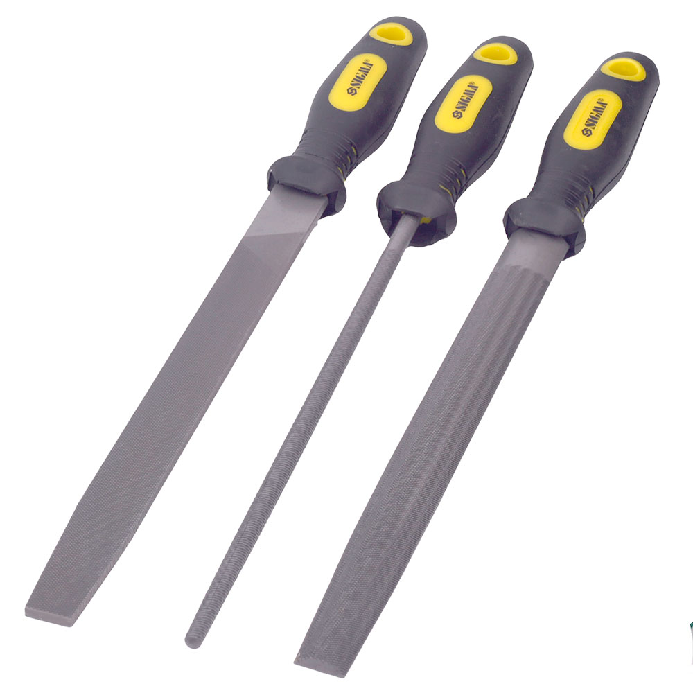 Характеристики Набор напильников 3шт 200мм №2 двухкомпонентная рукоятка (плоский, полукруглый, круглый) SIGMA (4408601) код товару 4408601