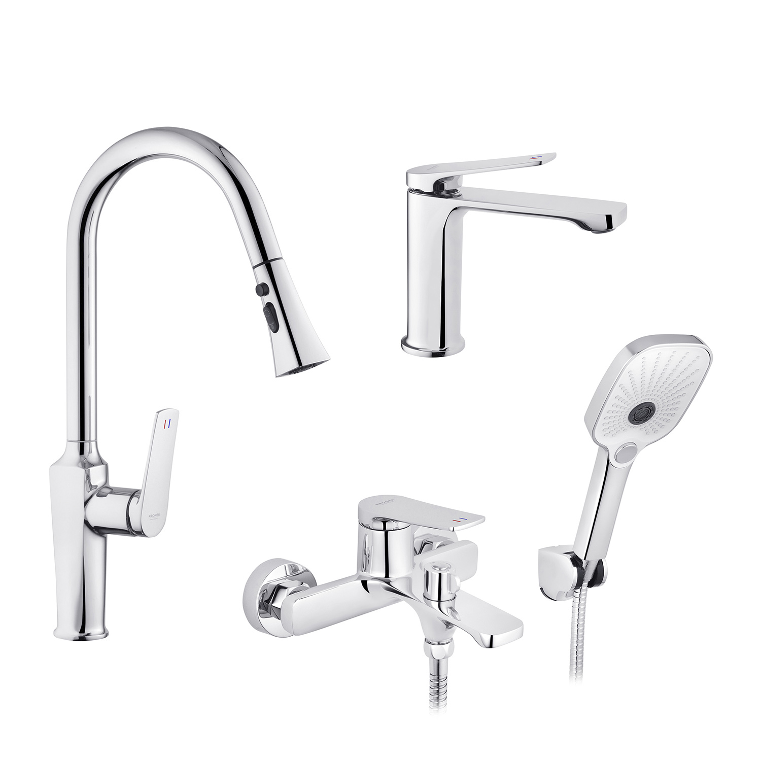 Опис Набор смесителей Kroner Makon-C060 + смеситель Makon-C030-T+ смеситель Makon-C010 код товару CVS30155