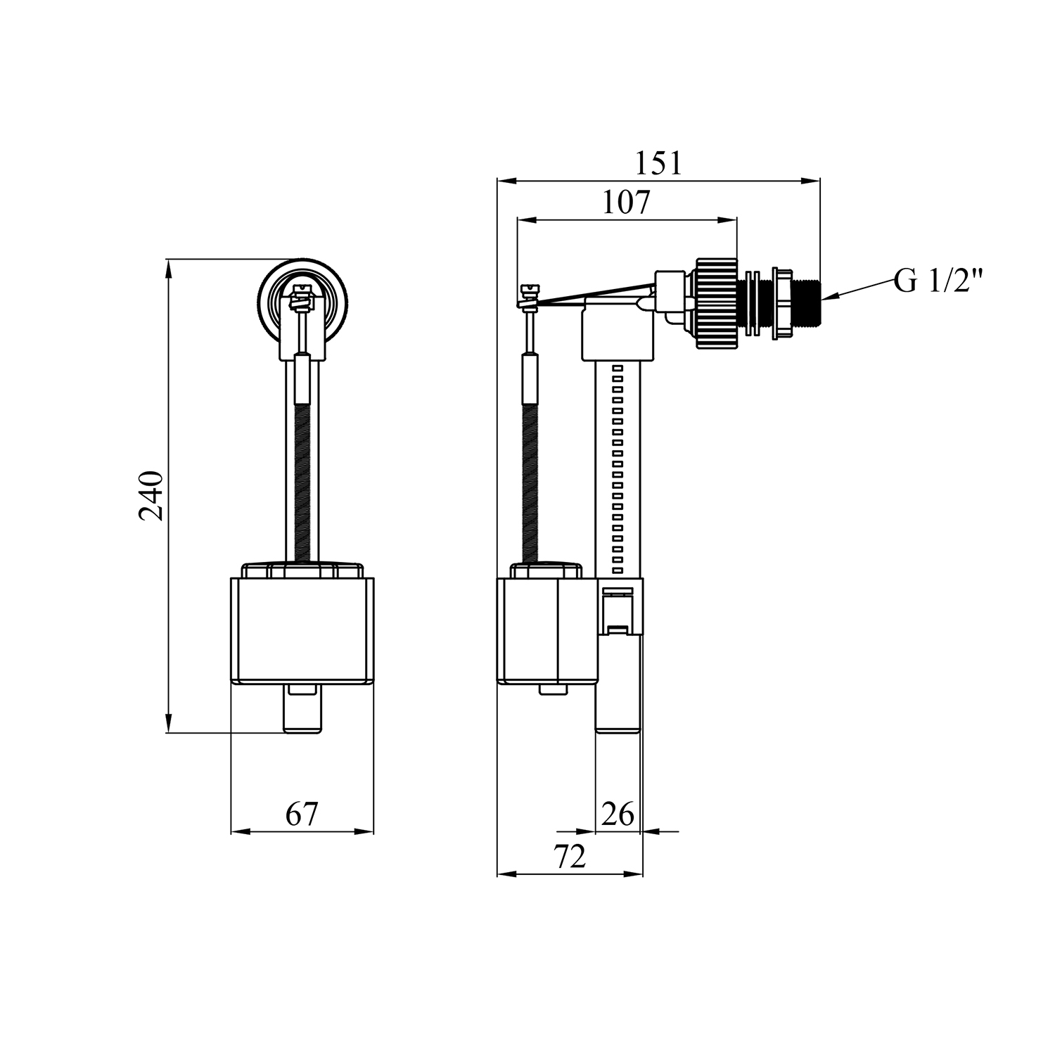 Опис Наливний клапан для бачка унітаза Agua SV02 з бічним підводом і пластиковою різьбою 1/2 BE0R0207 (КБ-1) код товару CV033438