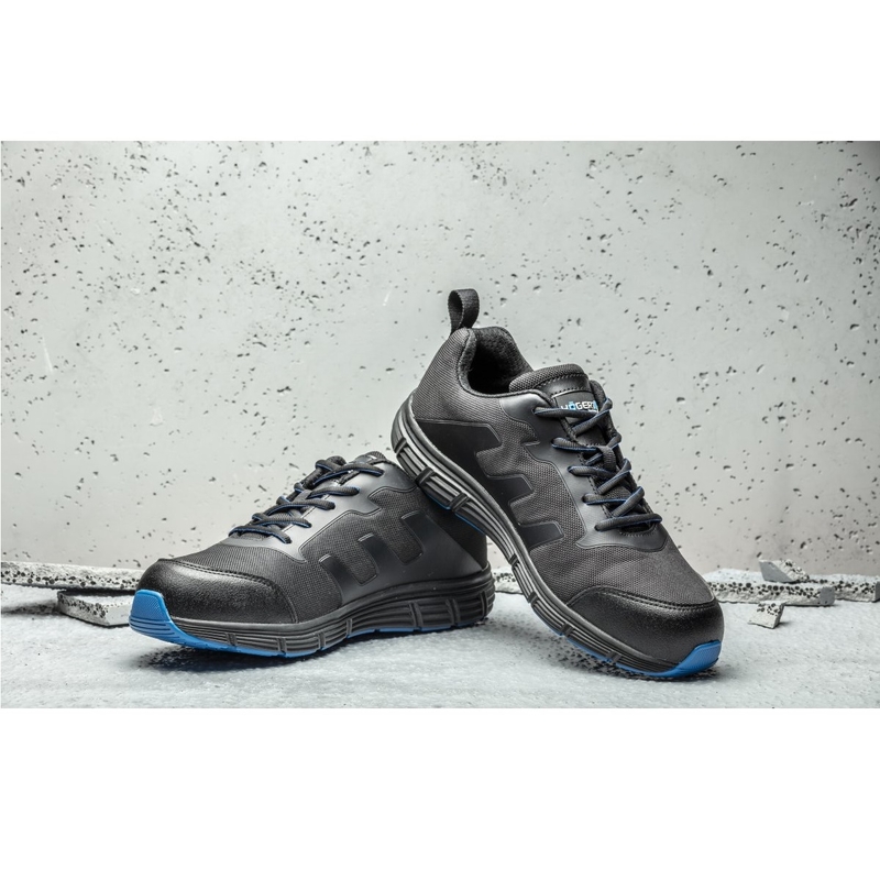 Чоловічі захисні напівчеревики. Виготовлені відповідно до стандарту, що визначає вимоги до взуття EN ISO 20 345:2011. Категорія захисного взуття – S1. Напівчеревики виготовлені з високоякісного матеріалу KPU, що сприяє зручності та комфорту використання. Вони оснащені сталевим підноском, який захищає пальці ніг від предметів, що падають. Завдяки підошві, що не ковзає, взуття ідеально підходить для ходьби по нерівній і слизькій поверхні. Взуття рекомендується в логістиці, транспорті, автомобілебудуванні, ремонтних та будівельних роботах. Вони чудово підходять для закритих приміщень.