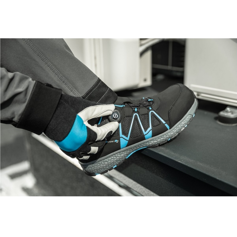 Чоловічі захисні черевики, що відповідають класу S1P за стандартом ISO 20345:2022. Висока якість виготовлення сприяє комфорту та простоті використання. Модель оснащена системою ADVANCED LACE SYSTEM, яка дозволяє швидко регулювати шнурівку та забезпечує точну і рівномірну фіксацію взуття. Черевики оснащені композитним легким носком, який захищає пальці ніг від падіння предметів, сміття, інструментів тощо. Завдяки протиковзкій підошві, взуття ідеально підходить для ходьби по нерівних і слизьких поверхнях. Взуття рекомендоване для логістики, транспорту, автомобільної промисловості, ремонтних робіт. Ідеально підходить для використання всередині приміщень (напр., холів).