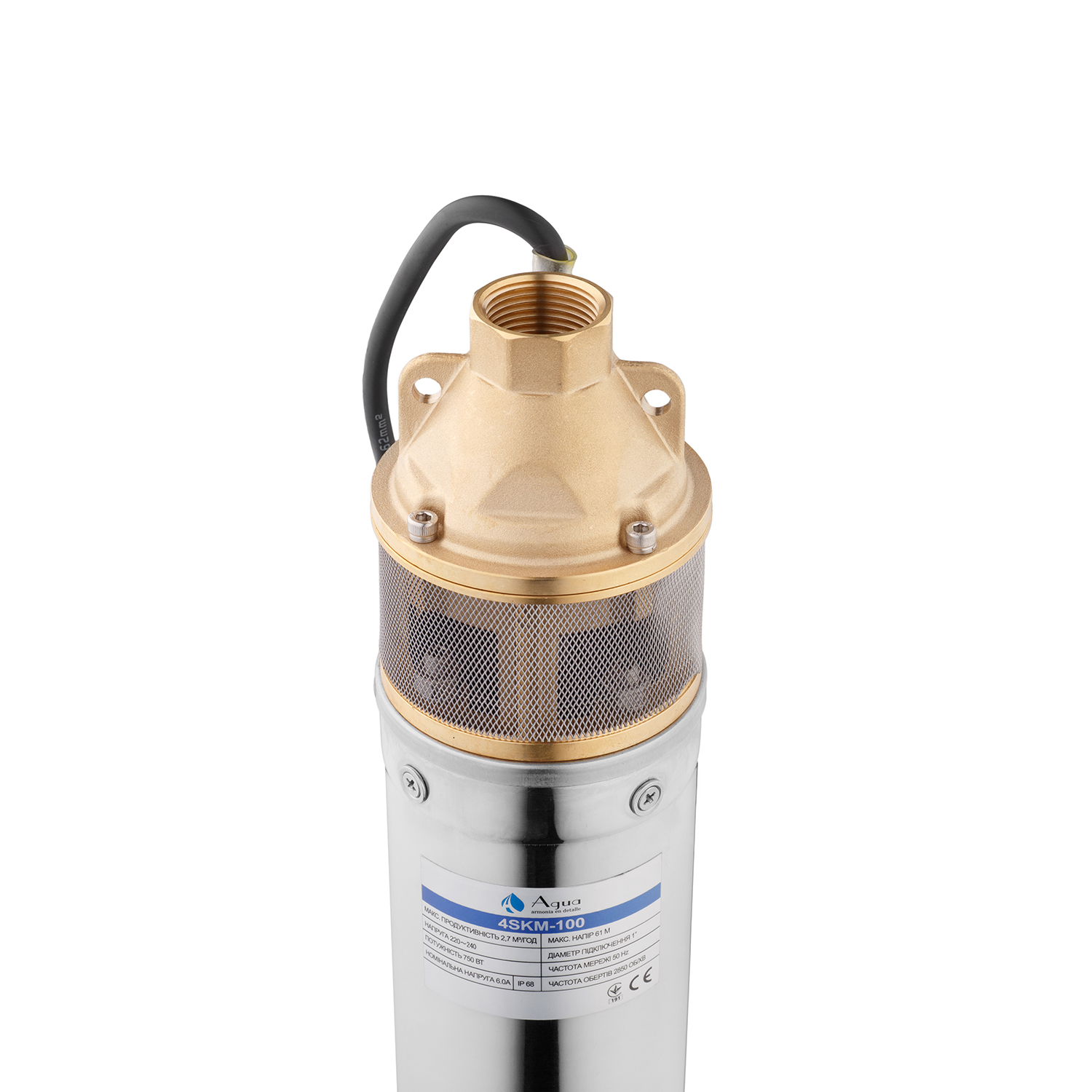 Характеристики Насос глубинный центробежный 4SKM 100 Hmax 61 м Qmax 45 л/мин P 750 Вт с пультом код товару CV035069