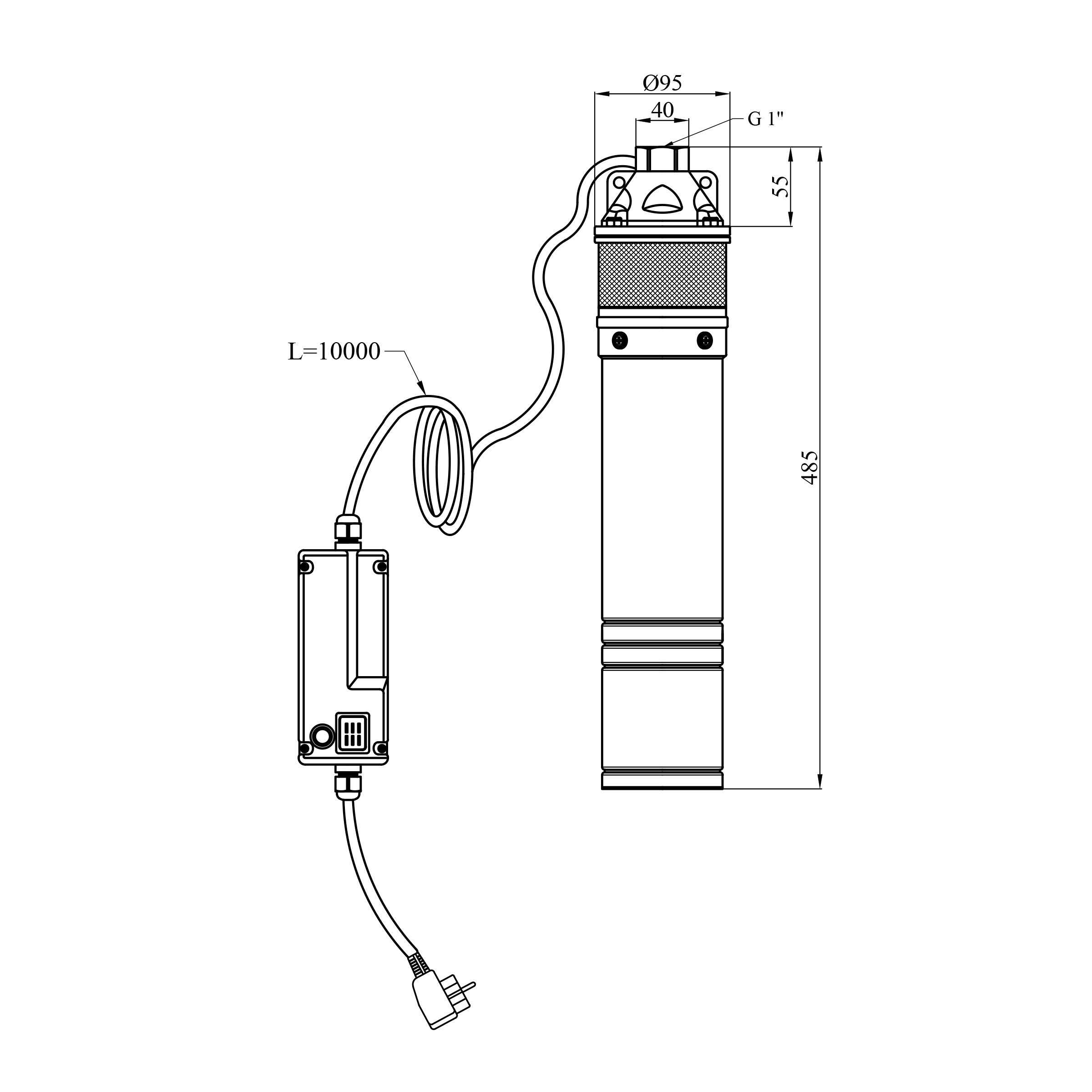 Насос глубинный центробежный 4SKM 100 Hmax 61 м Qmax 45 л/мин P 750 Вт с пультом