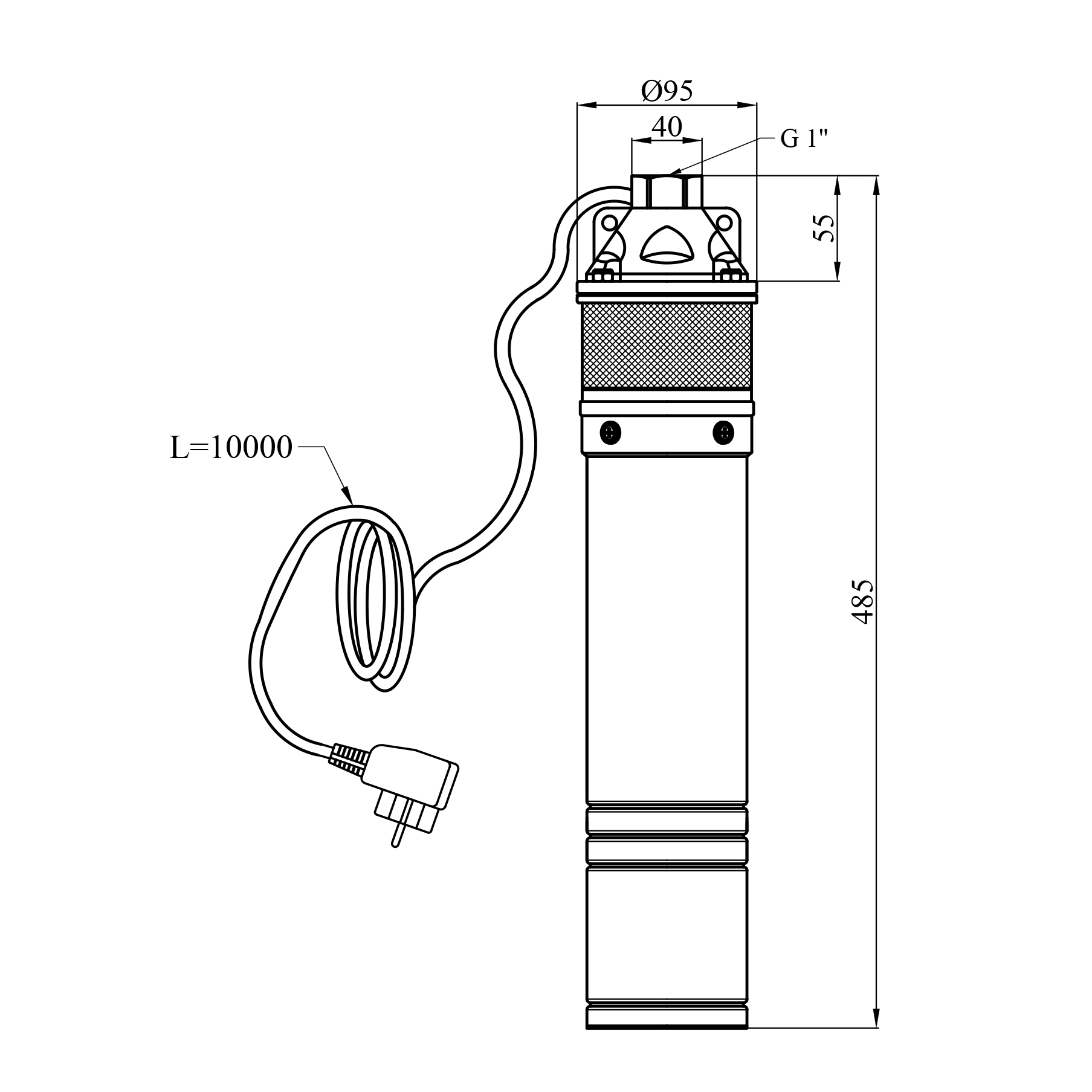 Характеристики Насос глубинный центробежный 4SKM 100C Hmax 61 м Qmax 45 л/мин P 750 Вт со встроенным конденсатором код товару CV035068