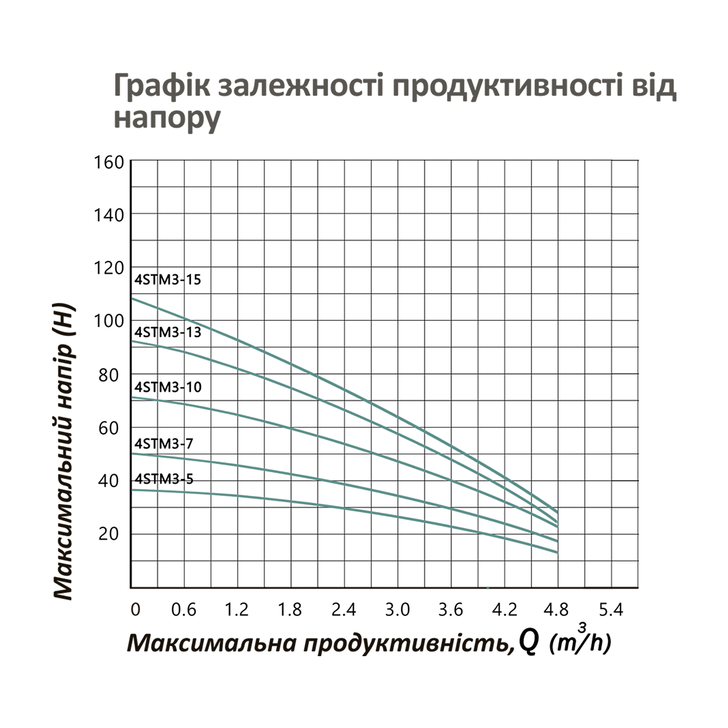 Характеристики Насос глибинний центробіжний багатоступеневий Pumpman 4STM3-13-0,75 кВт Hmax 93 м Qmax 4,8 куб.м 750 Вт код товару CV032270