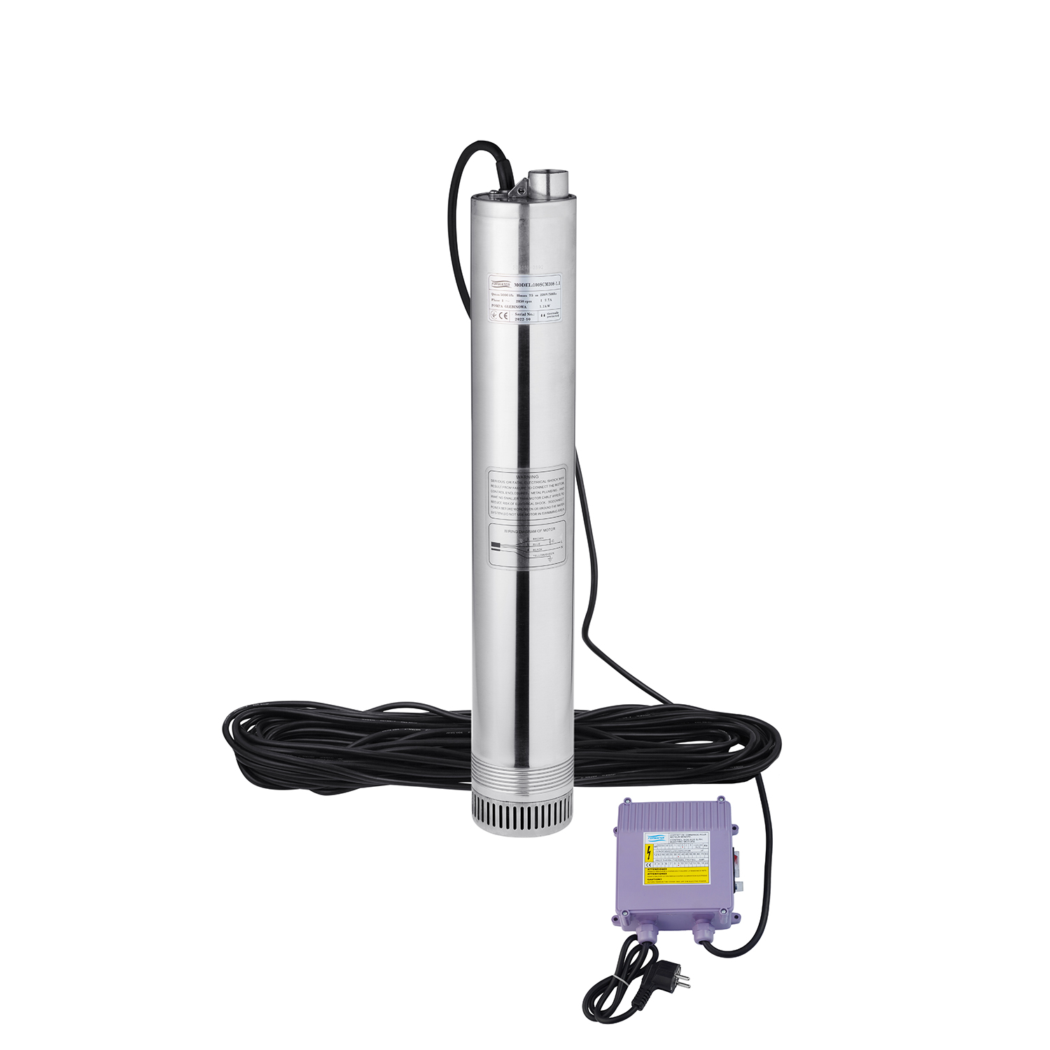 Глибинний насос Forwater 100SCM308-1.1 кВт призначений для ефективного забору води з глибини. Має нижній забір, без поплавка, ідеально підходить для систем поливу та водопостачання.