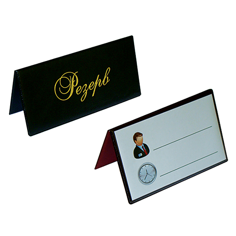 Двостороння табличка. На лицьовій стороні напис «Резерв». На звороті картка з покриттям з полівінілхлориду, для вказівки імені та часу резерву. Написи можна робити маркером для сухої дошки, потім напис легко стирається губкою.
