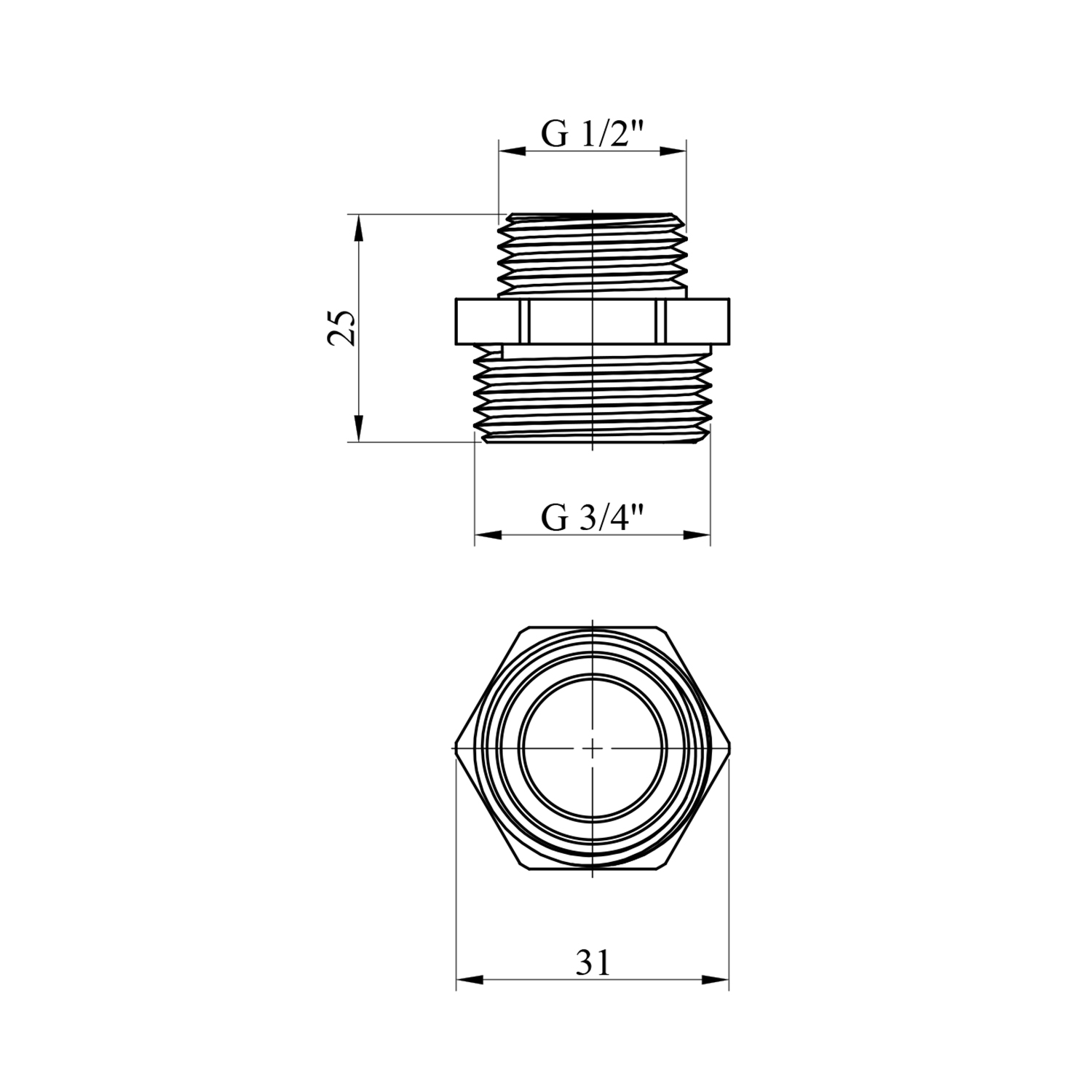 Характеристики Ниппель перехідний STA 3/4х1/2 НН латунний код товару CV017777