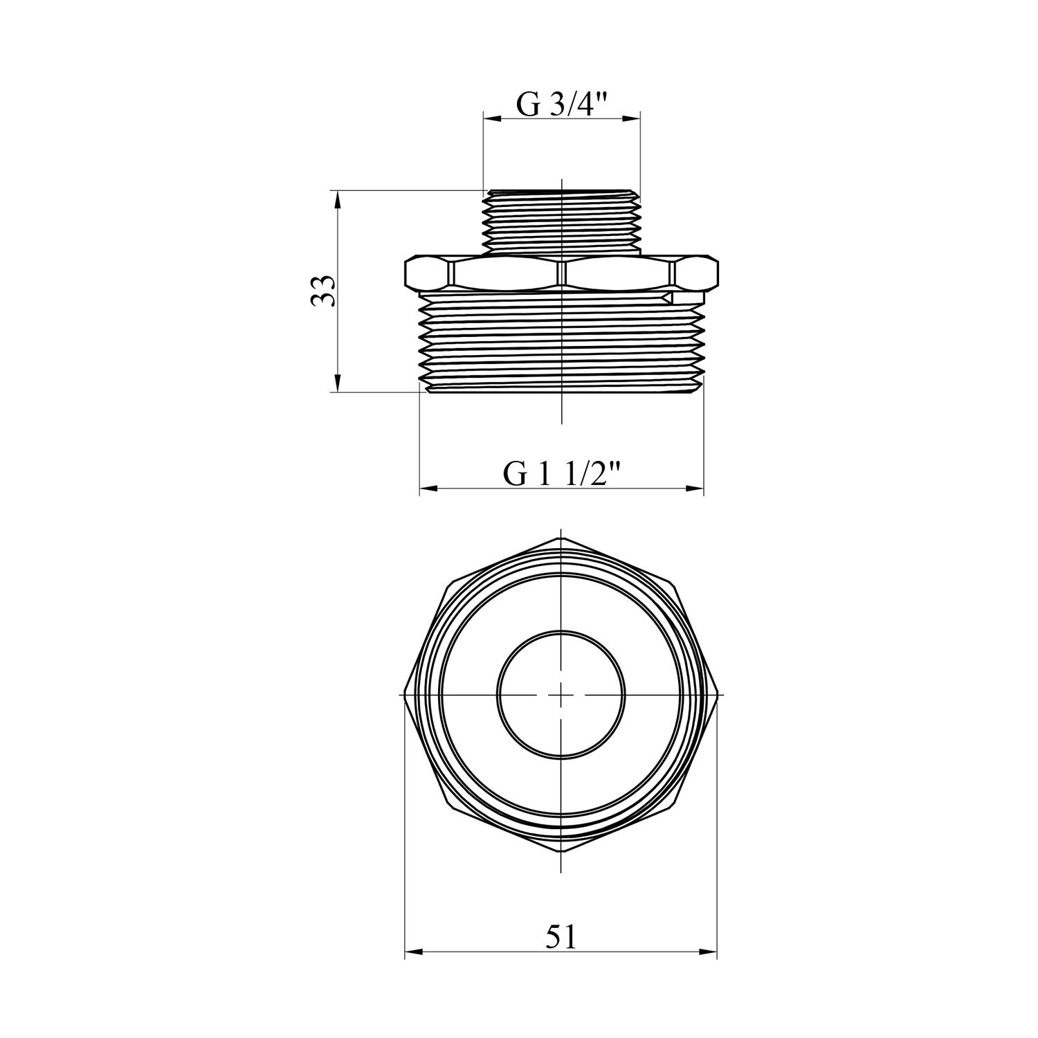 Характеристики Ниппель перехідний STA 1 1/2х3/4 НН латунний код товару CV022073