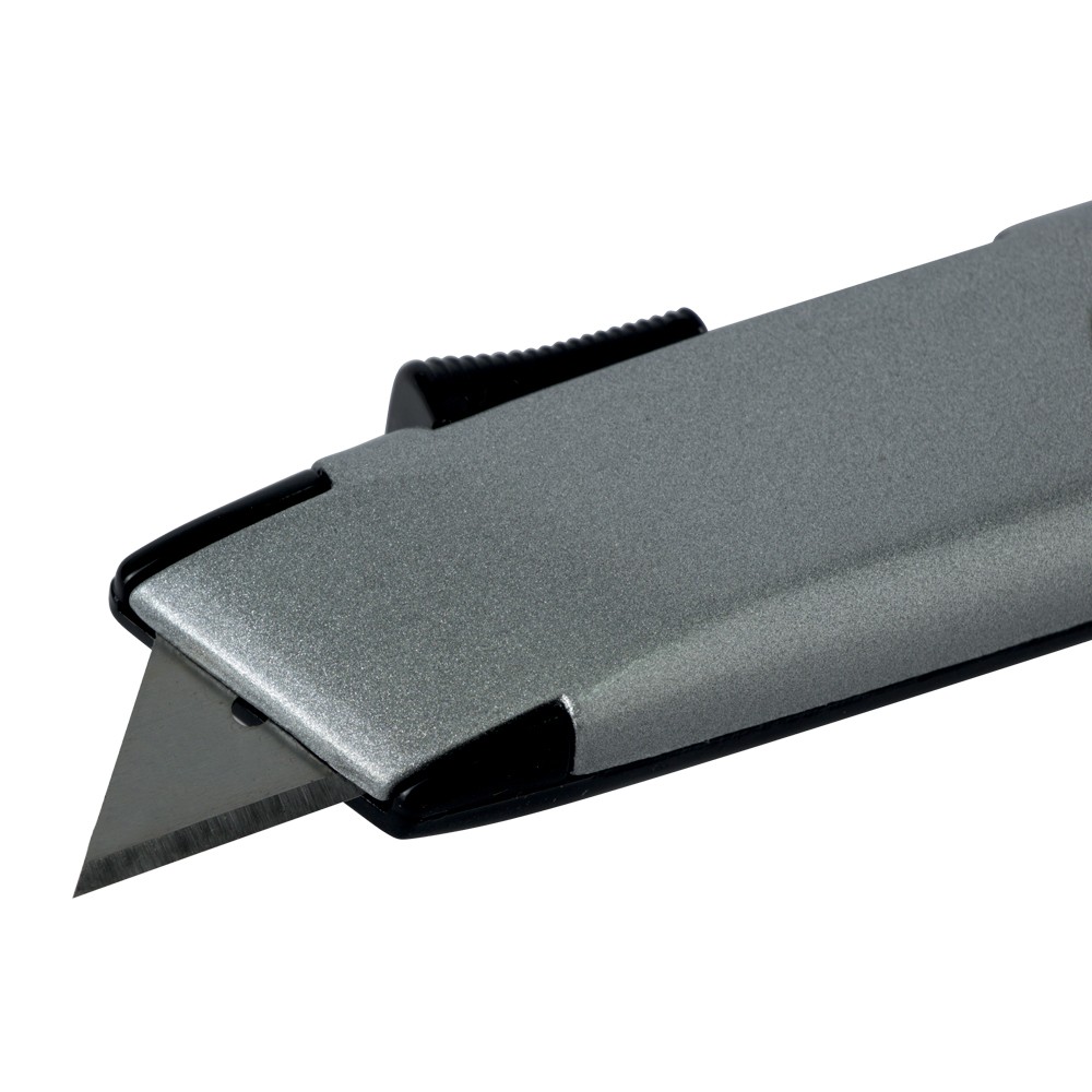 Опис Ніж будівельний (металевий корпус) лезо трапеція автоповернення лезвія SIGMA (8212061) код товару 1595