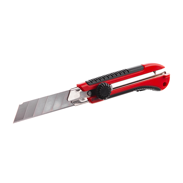Характеристики Ніж сегментний 25 мм, металева направляюча, обрезинена рукоятка INTERTOOL HT-0526 код товару HT-0526